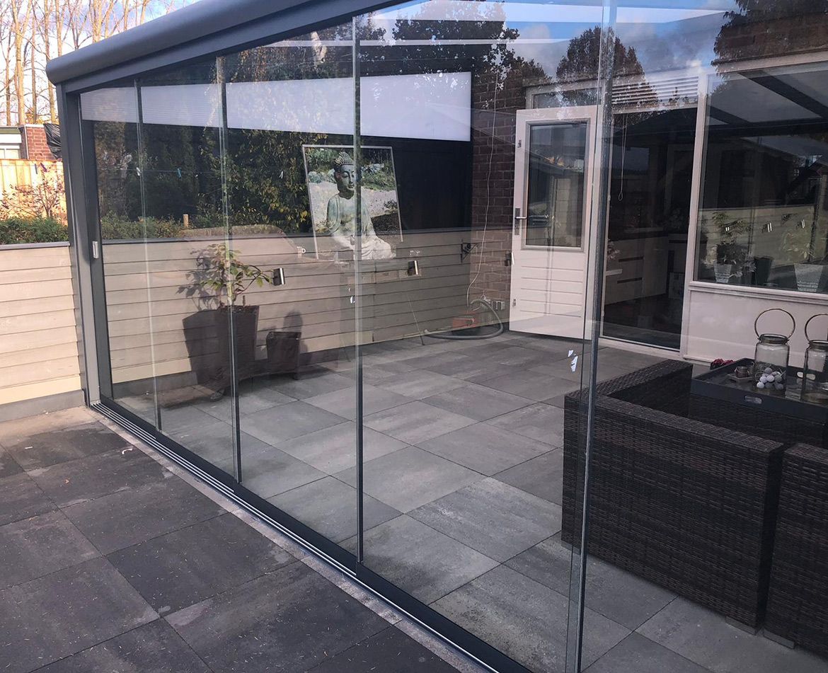 Er zijn verscheidene mogelijkheden met onze terrasoverkappingen. Zo kunt u kiezen voor een glazen dak of een polycarbonaat dak, moderne of klassieke stijl, en creëert u makkelijk een hele serre met glazen schuifdeuren en accessoires. Maak van uw Alensa terrasoverkapping een complete tuinkamer met de diverse uitbreidingsopties en geniet alle seizoenen van uw terras. Met glazen schuifwanden creëert u op koudere dagen een afgesloten ruimte.